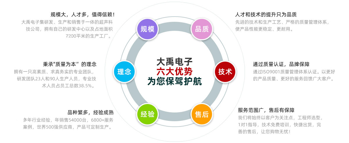 福州大禹電子科技有限公司成立于2008年自創辦以來,專注超聲產品的研發和產業化,始終堅持技術創新是企業發展動力的理念,運用最基礎的物理聲學原理,攻克了一系列卡脖子難題,成功打破了國外壟斷,把超聲技術運用到了工控、水利、市政、環保、醫療,海洋等各個領域。積累了多項發明專利和幾十項實用新型專利、軟件著作權、外觀專利;獲得了“科技創新小巨人”、“專精特新”、 “國家級高新技術企業”等榮譽,掌握了產品硬件、軟件、材料和工藝的核心技術,通過ISO9001體系認證和環境管理體系認證。主要產品有物位計、明渠/多普勒流量計、空氣/...